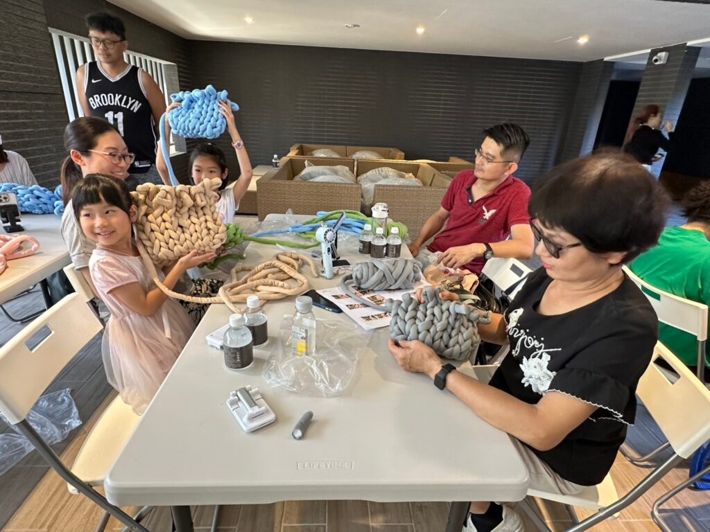 建築是經緯交織的工程,而生活則是情感交織的藝術。大漁建設本次特別舉辦「冰島毛線包」手作課程,邀請住戶一起體驗時下流行的粗針織工藝。冰島毛線以其蓬鬆、柔軟且具份量的質感著稱,透過雙手的穿梭與環繞,一條條厚實的毛線逐漸成型。這不只是手工包的製作過程,更是一場感官的放鬆旅程。我們希望透過指尖的觸感,讓住戶在繁忙的日常中找回緩慢的節奏,親身感受「家」所帶來的那份被包裹、被守護的溫潤心意。